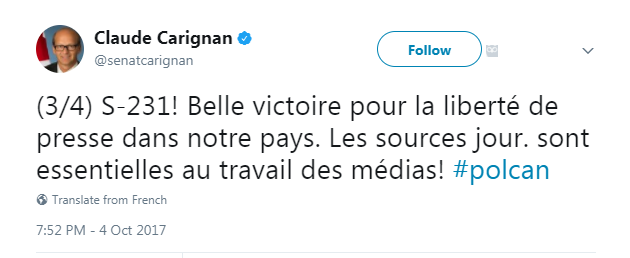 Protection des sources journalistiques : le projet de loi du sénateur Carignan est adopté