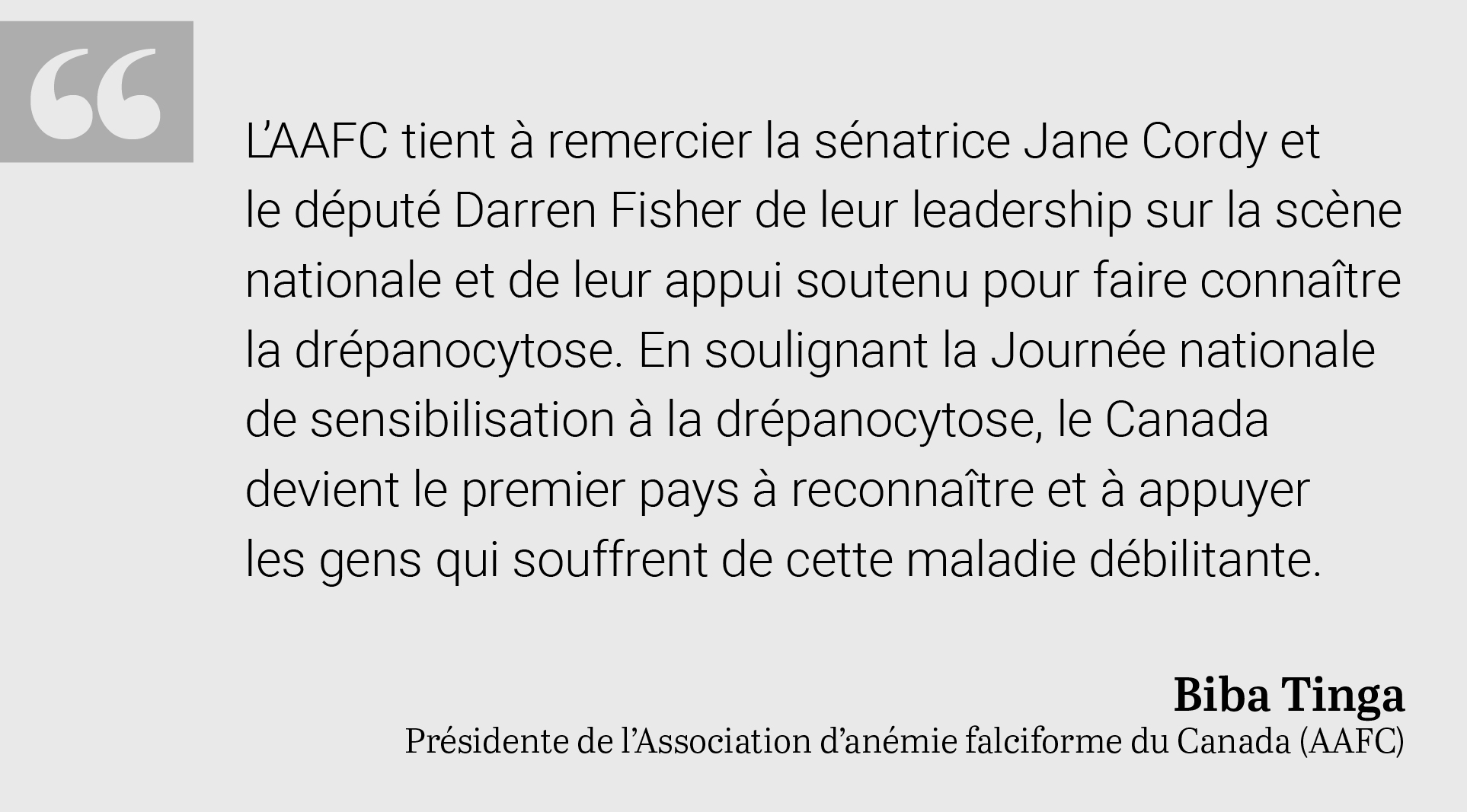 La drépanocytose est la maladie génétique la plus courante dans le monde. L'Organisation mondiale de la Santé estime que, à l'échelle mondiale, près de 100 millions de personnes sont porteuses du trait drépanocytaire. On estime également que 5 000 personnes souffrent de cette maladie au Canada. De nombreux autres Canadiens sont porteurs du trait drépanocytaire, mais la plupart d'entre eux ne le savent même pas.