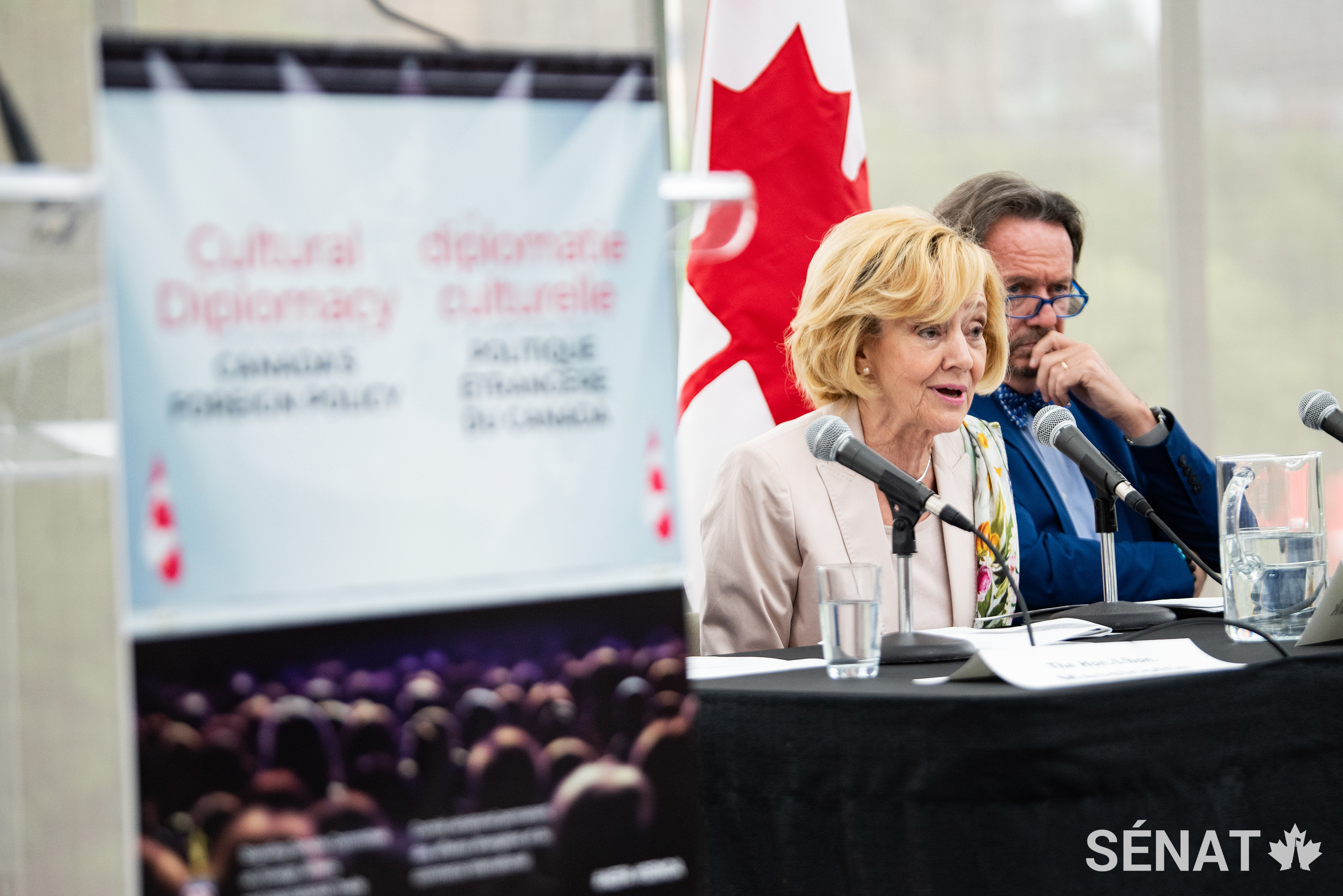 La sénatrice A. Raynell Andreychuk prend la parole lors d’une conférence de presse tenue le 11 juin 2019 à la suite du lancement du rapport du Comité sénatorial des affaires étrangères et commerce international, La diplomatie culturelle: À l’avant-scène de la politique étrangère du Canada.