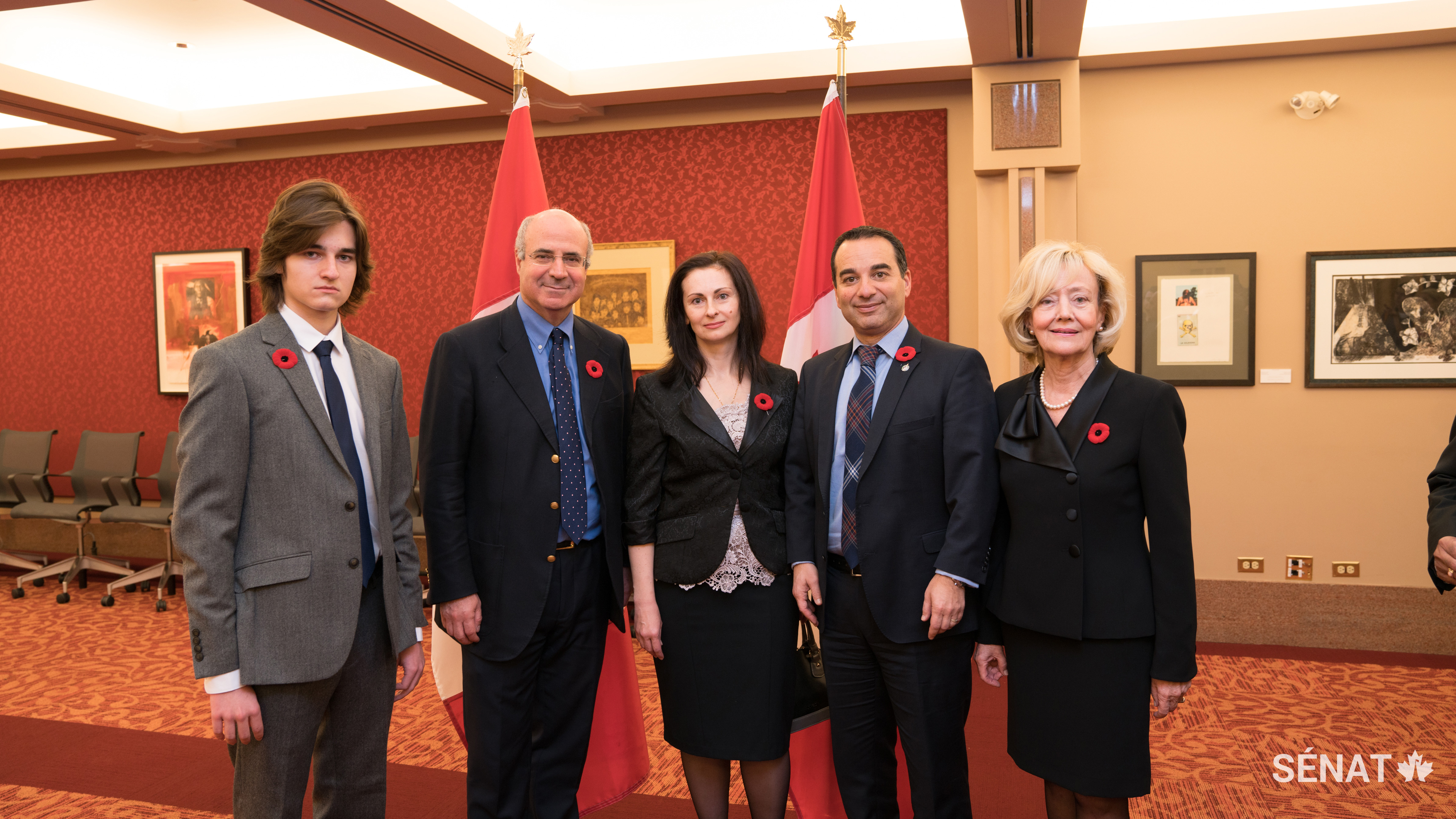 De gauche à droite: Nikita Magnitsky, Bill Browder, Natalia Zharikova, le député Michael Levitt et la sénatrice Andreychuk lors d’une rencontre sur la Colline du Parlement le 2 novembre 2017, à l’occasion de l’adoption du projet de loi S-226. La sénatrice Andreychuk a parrainé le projet de loi, qui permet au Canada de prendre des sanctions contre les auteurs d’atteintes aux droits de la personne dans d’autres pays.