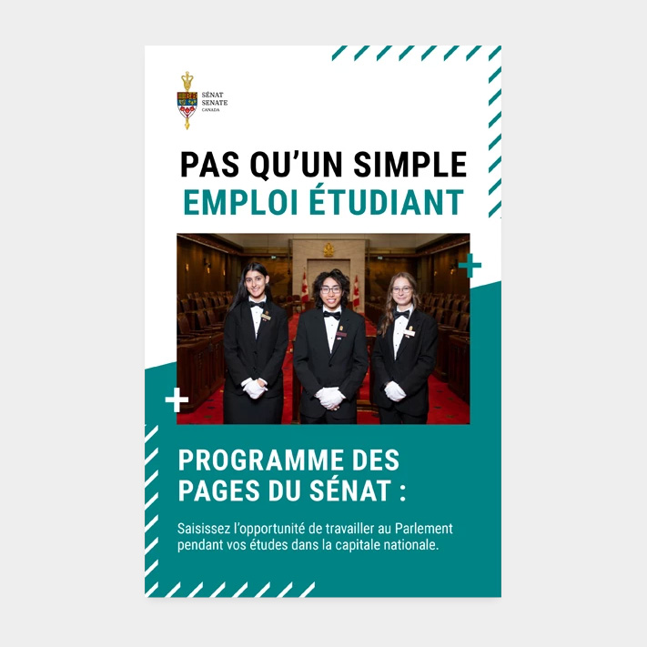 Donne un aperçu du Programme des pages du Sénat et de son processus de candidature.