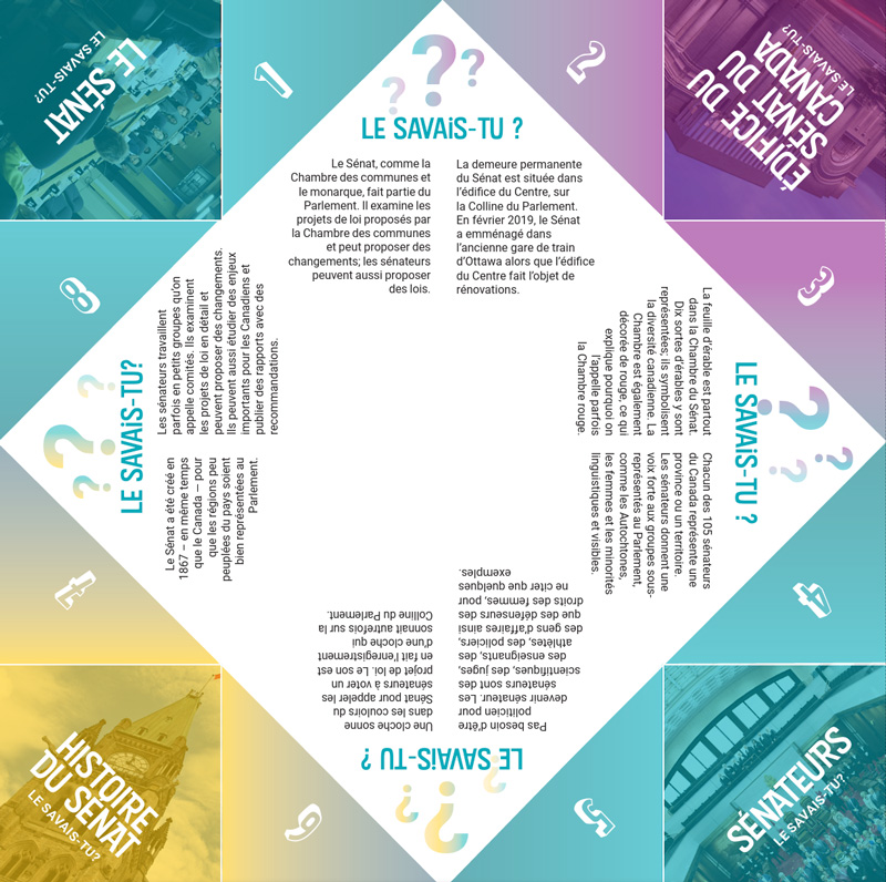 Permets aux élèves d’en découvrir davantage sur les sénateurs et sur l’histoire, l’art et l’architecture du Sénat.