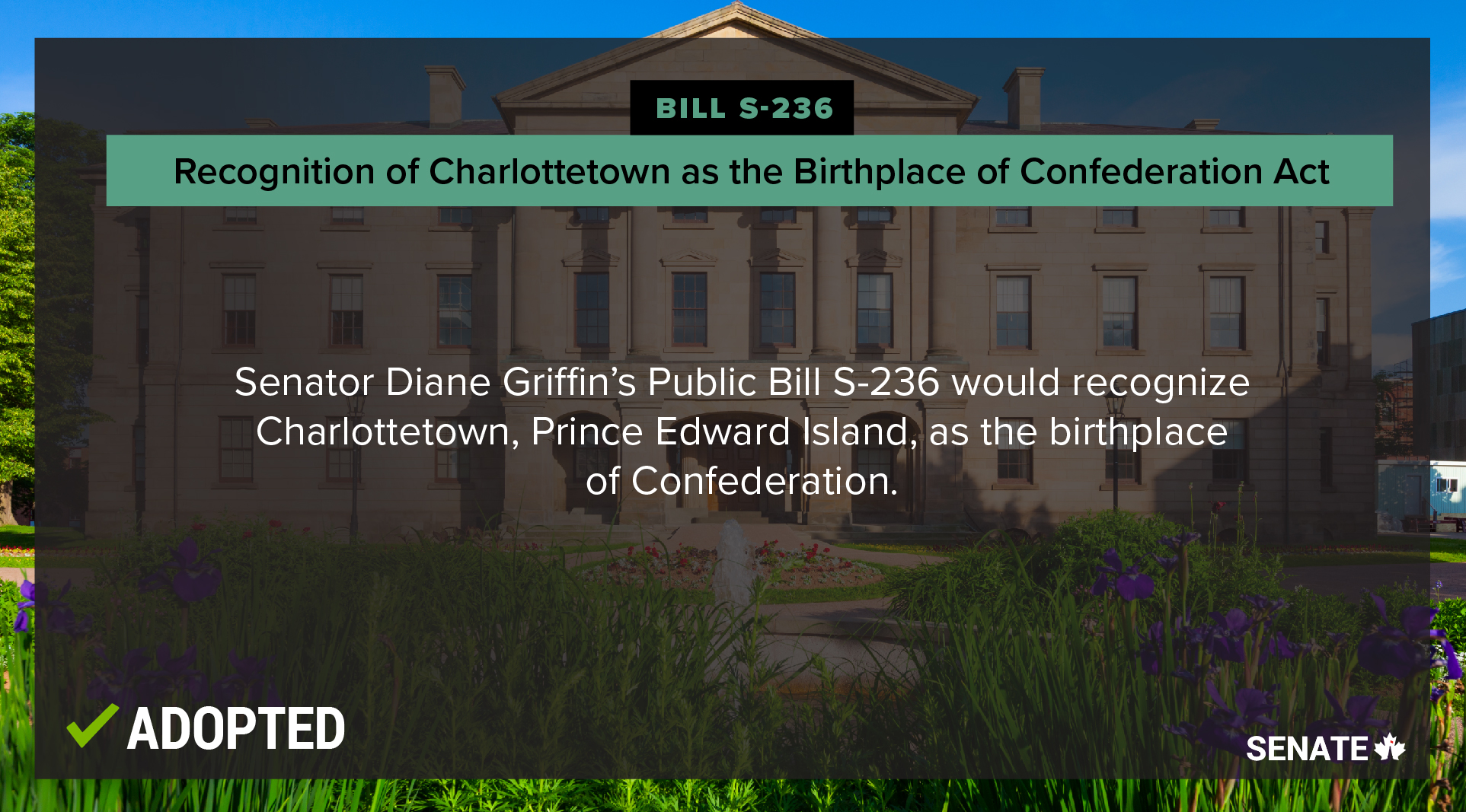 Charlottetown recognized as birthplace of Confederation: Senator Griffin’s bill is adopted