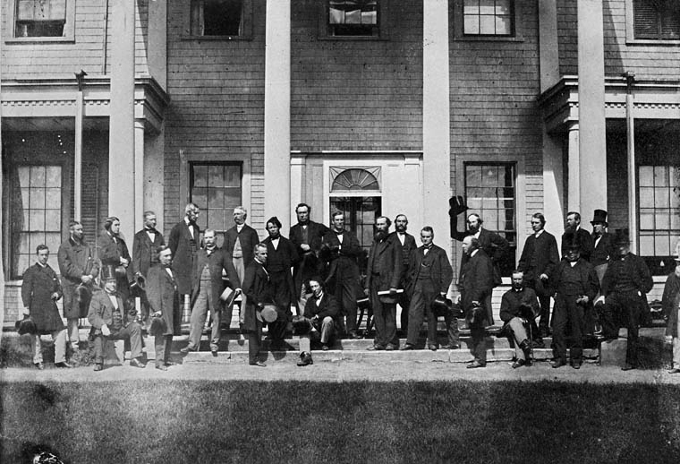In 1864, delegates from the three Maritime colonies agreed to meet in Charlottetown to discuss Maritime union, while a delegation of Canadians — now Ontario and Quebec — came as observers. The topic of Maritime union was quickly laid aside in favour of discussing the larger idea of bringing together all of British North America.