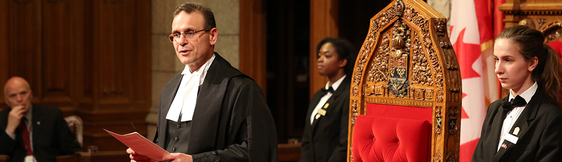 The duties of the Speaker are multi-faceted. It is the Speaker’s function to preside over the Senate proceedings, ensure the orderly flow of debate, and interpret parliamentary rules. He is also called to perform diplomatic duties at home and abroad consistent with the Speaker of the Senate’s fourth overall position in the Canadian Order of Precedence.